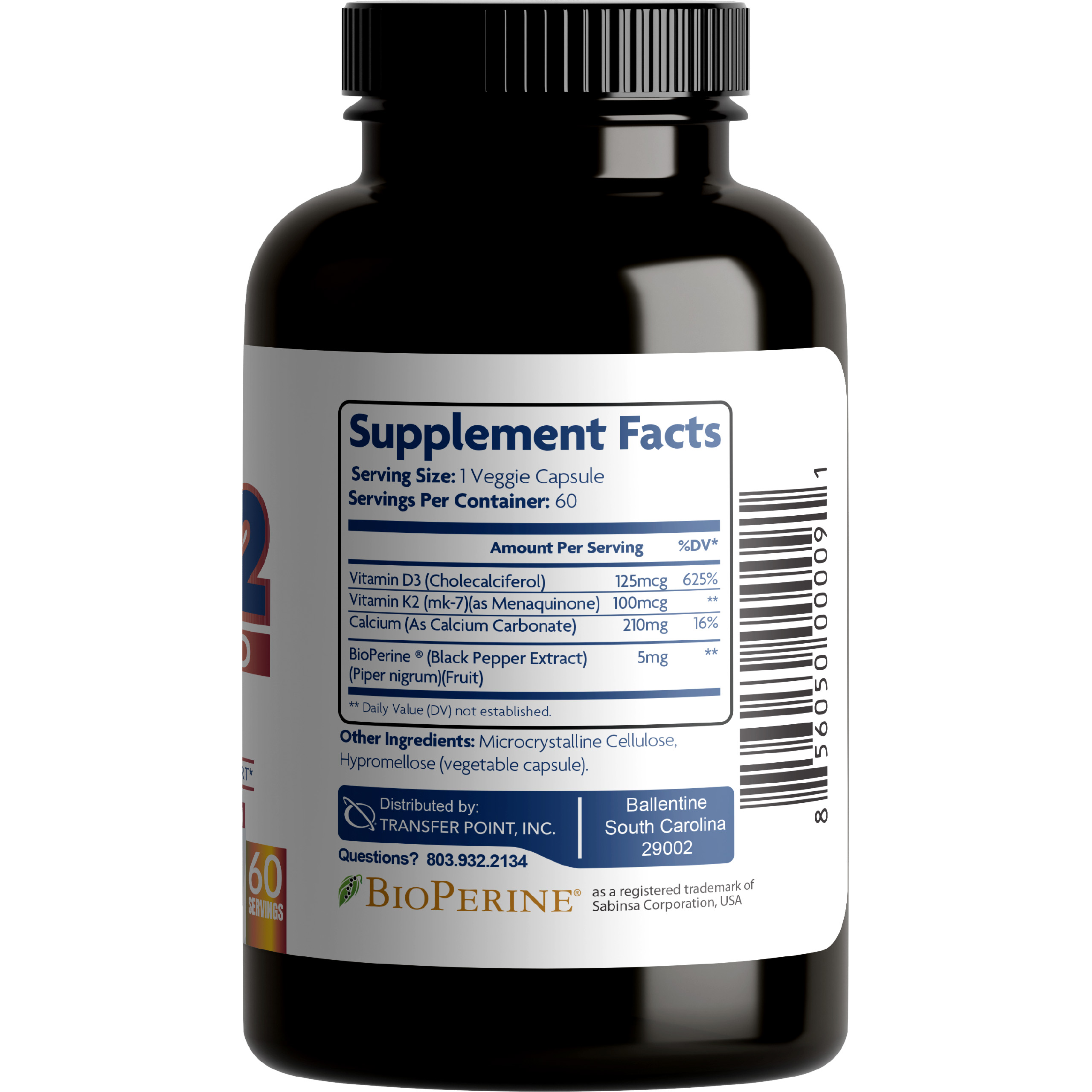 - BONE SUPPORT: Each serving delivers 5000 IU of Vitamin D3 plus 100 mcg MK-7 Vitamin K2 to support calcium absorption and help guide calcium to bones and teeth where it belongs.
